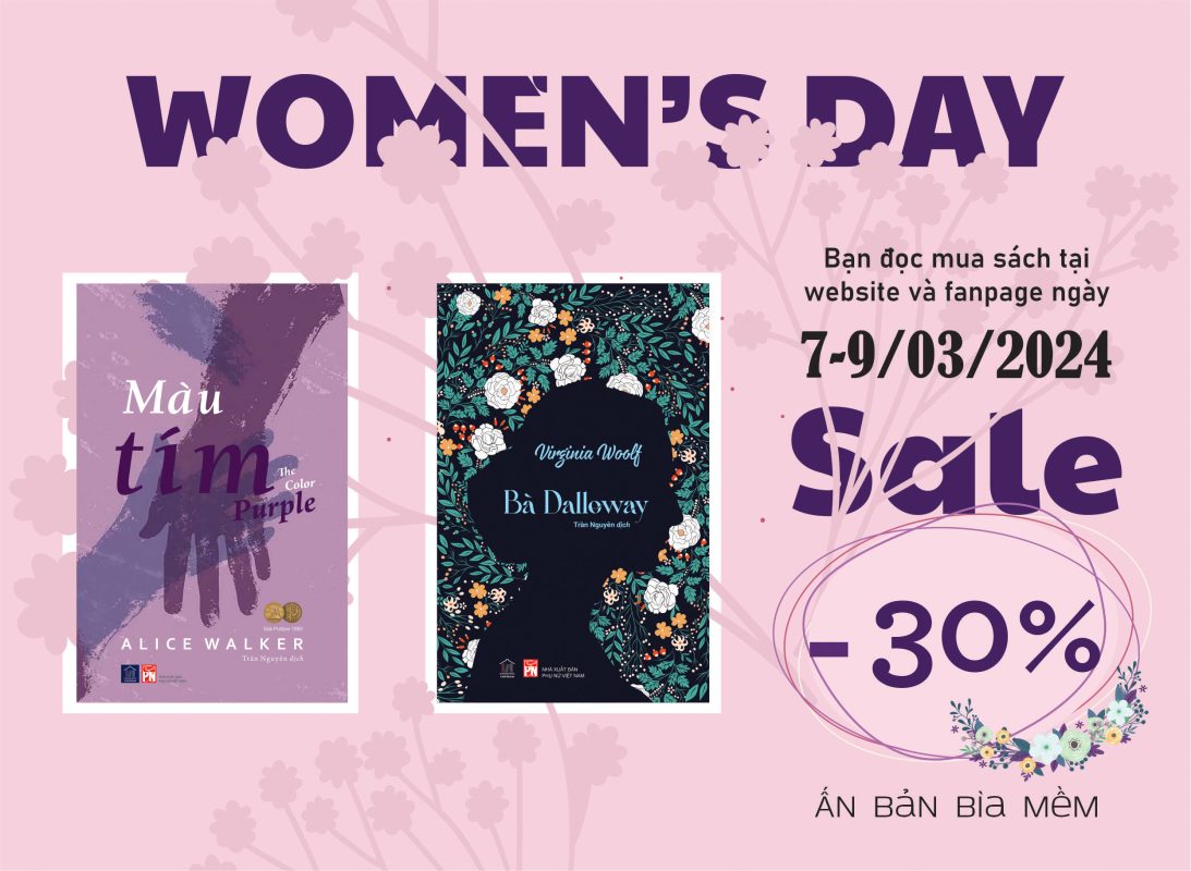 Chiết khấu 30% trong 3 ngày 7 – 8 – 9/3 cho hai ấn bản bìa mềm cuốn “Bà Dalloway” và “Màu Tím”, hai cuốn sách của hai tác giả nữ, do Nhà xuất bản Phụ nữ Việt Nam xuất bản, và nhân vật chính của hai cuốn sách này cũng là hai người phụ nữ.